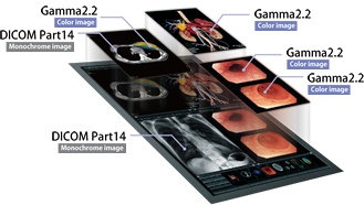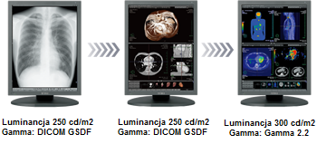 Monitor wyświetla najbardziej optymalny zakres 1024 odcieni szarości z pełnej palety 16 bitów, dzięki czemu przejścia między odcieniami szarości w obrazach medycznych są realizowane płynnie.